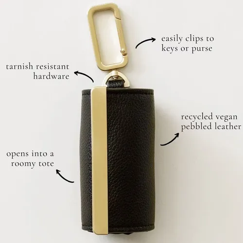 This keychain tote is compact enough to clip onto your keychain, yet expands into a spacious handbag whenever and wherever you need it.
