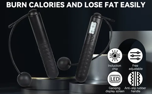 Say goodbye to guesswork. Our smart jump rope is your personal fitness coach. The clear LCD Backlight Display keeps you informed in real-time, showing your Total Count, Exercise Time, Calories Burned, and even your current Pace. It's all the data you need to set goals and crush them.